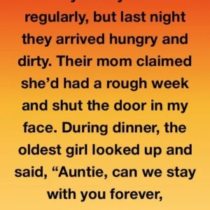 I babysat my nieces regularly, but last night they arrived hungry and dirty. Their mom claimed she’d had a rough week and shut the door in my…
