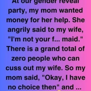 At our gender reveal celebration, my mom requested payment for her assistance. She angrily told my wife, “I’m not your f… maid.” There are no persons who…