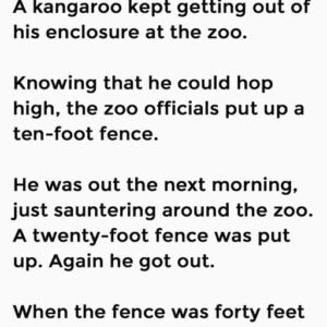 A kangaroo kept getting out of his enclosure at the zoo. Knowing that he could hop high, the zoo officials put up a ten-foot fence. He was…