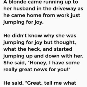 A blonde came running up to her husband in the driveway as he came home from work just jumping for joy. He didn’t know why she was…