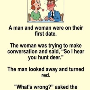 A man and woman were on their first date. The woman was trying to make conversation and said, “So I hear you hunt deer.” The man looked…