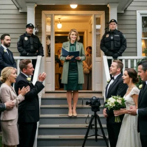 I stood in the shadow of the massive crystal chandelier, my fingers adjusting the same arrangement of white roses for the third time in five minutes. They…