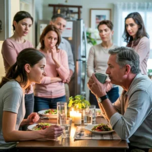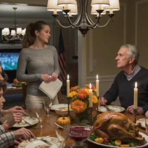 The laughter died first. Then the forks froze midair. And in the silence of a warm Illinois dining room, my father’s voice cracked through like a gunshot:…