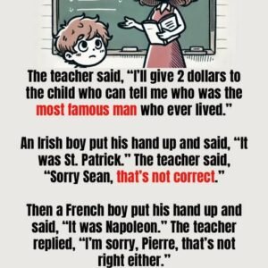The teacher said, “I’ll give 2 dollars to the child who can tell me who was the most famous man who ever lived.” An Irish boy put…