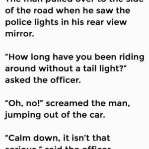 The man pulled over to the side of the road when he saw the police lights in his rear view mirror. “How long have you been riding…