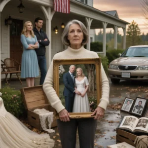 I had just stepped into the yard after my sister’s funeral when I saw my mother’s wedding dress—the only keepsake left after forty years—draped over the flower…