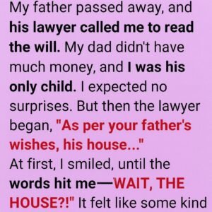 My father passed away, and his lawyer called me to read the will. He didn’t have much money, and I was his only child. I expected no…