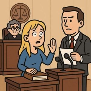 A blonde was summoned to court to appear as a witness in a lawsuit. The prosecutor opened his questioning with, “Where were you the night of August…