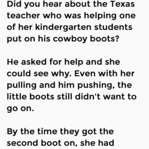 Did you hear about the Texas teacher who was helping one of her kindergarten students put on his cowboy boots? He asked for help and she could…