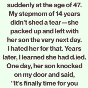 Thirteen Years Later, Her Son Told Me the Truth My father died at forty-seven. At least, that’s how the story went. One minute he was laughing in…