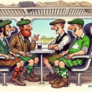 Three Scots and three Irishmen are traveling by train to a conference. At the station, the three Irishmen each buy tickets and watch as the three Scots…