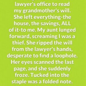 The Inheritance No One Expected We were all seated in the attorney’s office when my grandmother’s will was read aloud. Every asset—her house, her savings, everything she…