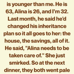 My father’s new wife, Alina, is younger than me. He’s 63, she’s 26, and I’m 32. I wish the age gap were the strangest part—but last month,…