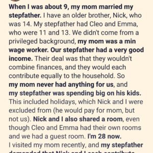 Growing up, I watched my stepdad take his daughters on vacations while my brother and I stayed behind. We were never treated as equals. I eventually thought…