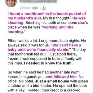 While doing laundry, I found a toothbrush in my husband’s suit pocket, with toothpaste on the bristles. My gut screamed cheating. But when I followed him on…
