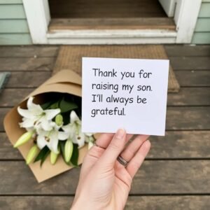 Every Sunday at noon, a bouquet appeared on my porch with an unsigned note: “Thank you for raising my son.” I only had one child, and the…