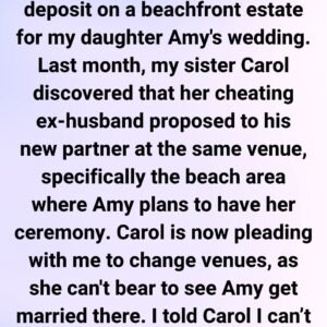 A mother booked her daughter’s dream beachfront wedding venue—only to have her sister beg her to change it. Past affairs, family heartbreak, and long-standing tensions collided, raising…