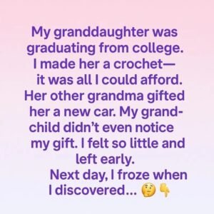 My granddaughter was graduating from college. I made her a crochet blanket — it was all I could afford. Her other grandma gifted her a brand-new car….