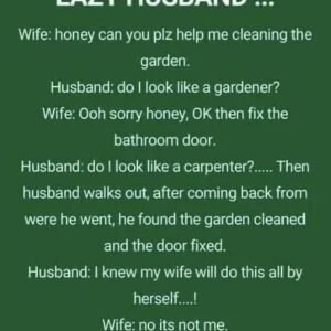 Wife: honey can you plz help me cleaning the garden. Husband: do I look like a gardener? Wife: Ooh sorry honey, OK then fix the bathroom door….