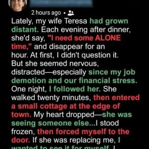 For weeks, my wife Teresa disappeared every night after dinner, insisting she needed to be “alone.” I assumed she wanted space, but the secrecy gnawed at me….