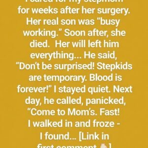 I cared for my stepmom for weeks after her surgery. Her real son was “busy working.” Soon after, she died. Her will left him everything… He said,…