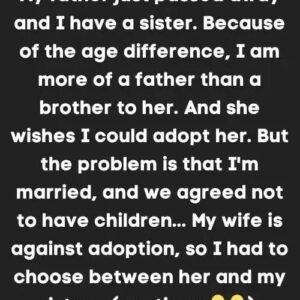 The brother has the idea to adopt his little sister after their father passed away, but he has discovered that his wife is against it. I’m curious…