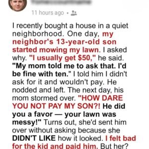 Homeownership felt like a dream—until my neighbor decided my lawn was her business. One afternoon, I came home to find her son mowing my yard without permission….