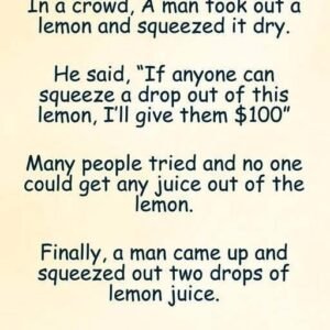 In a crowd, A man took out a lemon and squeezed it dry. He said, “If anyone can squeeze a drop out of this lemon, I’ll give…