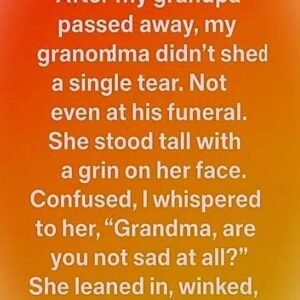 Not even at his funeral did she cry. My grandma stood tall with calm strength and a gentle smile. Confused, I whispered, “Grandma, aren’t you sad?” She…