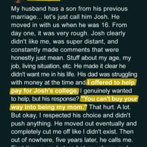 When her hostile stepson cruelly rejected her offer to fund his college—spitting out, “You can’t buy your way into being my mom”—she stepped back and let him…