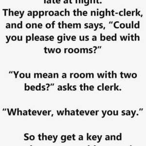 Two drunks enter a hotel late at night. They approach the night-clerk, and one of them says, “Could you please give us a bed with two rooms?”…