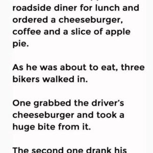 A truck driver stopped at a roadside diner for lunch and ordered a cheeseburger, coffee and a slice of apple pie. As he was about to eat,…