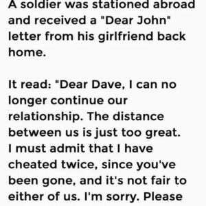 A soldier was stationed abroad and received a “Dear John” letter from his girlfriend back home. It read: “Dear Dave, I can no longer continue our relationship….