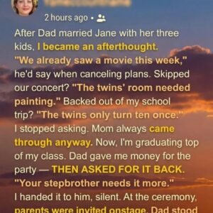 After Dad married Jane with her three kids, I became an afterthought. “We already saw a movie this week,” he’d say when canceling plans. Skipped our concert?…