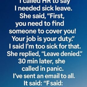 I woke up with a fever. I called HR to say I needed sick leave.She said, “First, you need to find someone to cover you! Your job…