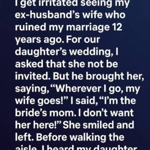 I get irritated seeing my ex-husband’s wife who ruined my marriage 12 years ago. For our daughter’s wedding, I asked that she not be invited. But he…