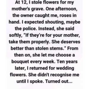 At 12, I Took Flowers for My Mother’s Grave — Ten Years Later, Returning as a Bride, the Florist Revealed a Secret