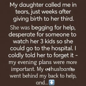 My daughter called me in tears, just weeks after giving birth to her third child. She was begging for help, desperate for someone to watch her kids…