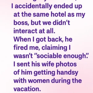 During my vacation, I unexpectedly found myself at the same hotel as my boss. It wasn’t planned—we simply chose the same destination. Although we crossed paths a…