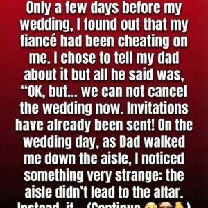 Only days before my wedding, I learned my fiancé had been cheating. Shaken and heartbroken, I told my dad, expecting comfort or outrage. Instead, he paused and…