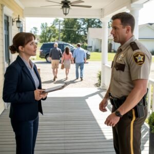 I was setting up chairs for a paying client’s rehearsal dinner when I heard the cars. Three vehicles pulling into the gravel driveway, the sound carrying through…