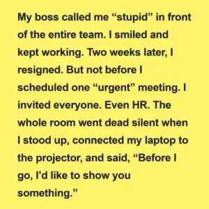 My boss called me “stupid” in front of the entire team. I smiled and kept working. Two weeks later, I resigned. But not before I scheduled one…