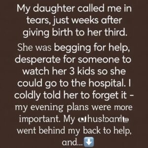 My daughter called me in tears, just weeks after giving birth to her third child. She was begging for help, desperate for someone to watch her kids…