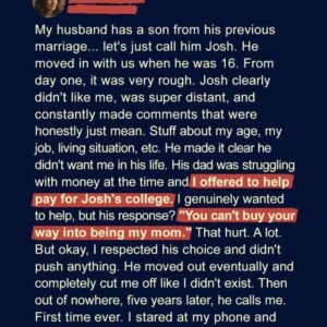 When I offered to pay for my stepson’s college, he looked at me and said, “You can’t buy your way into being my mom.” Five years later, he called with news I never expected.