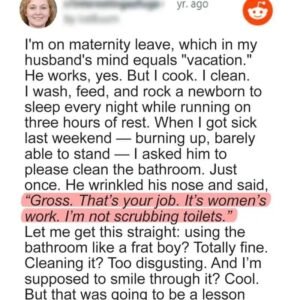 When my husband told me scrubbing toilets was “women’s work,” I knew exactly what to do. What happened next involved his precious Xbox, my cousin’s cleaning skills,…