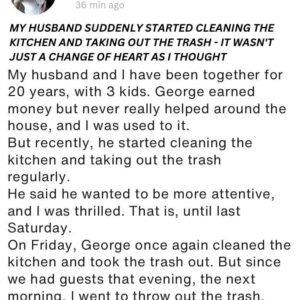 My husband unexpectedly began tidying up the kitchen and disposing of the trash. When I found out the reason behind it, I decided to get my own back.