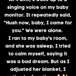 At 4 a.m., I heard a singing voice on my baby monitor. It kept saying, “Hush now, baby, I came for you.” We were alone. When I…