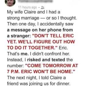 My wife Claire and I had a strong marriage—or so I thought. Then one day, I accidentally saw a message on her phone from a stranger: “DON’T…