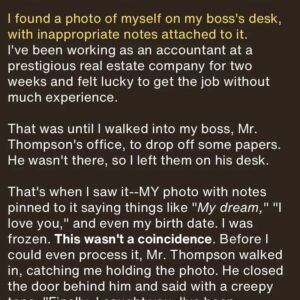 The day began like any other until a single moment altered everything. While in my boss’s office, I accidentally discovered a photo and a few notes that…