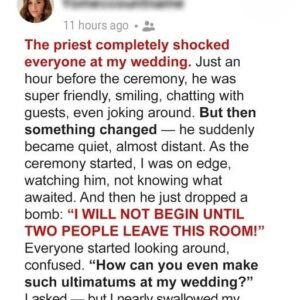 I thought my wedding day would be perfect until the priest refused to start the ceremony. When he pointed at two people in my family and demanded…